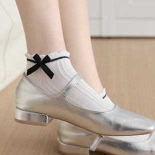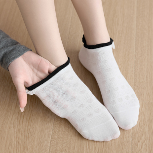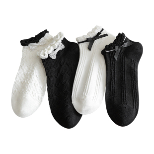 蝴蝶结花边袜子女纯棉船袜春夏薄款 好看 低帮浮雕短袜女生配小皮鞋