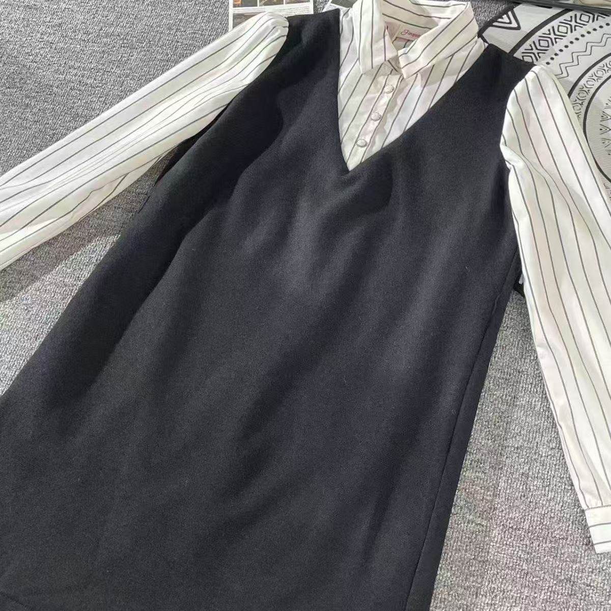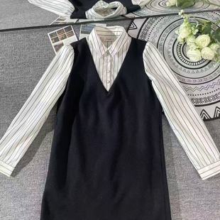 百搭气质优雅显瘦蕾丝拼接针织连衣裙女 秋日庭深~法式 吴大笑