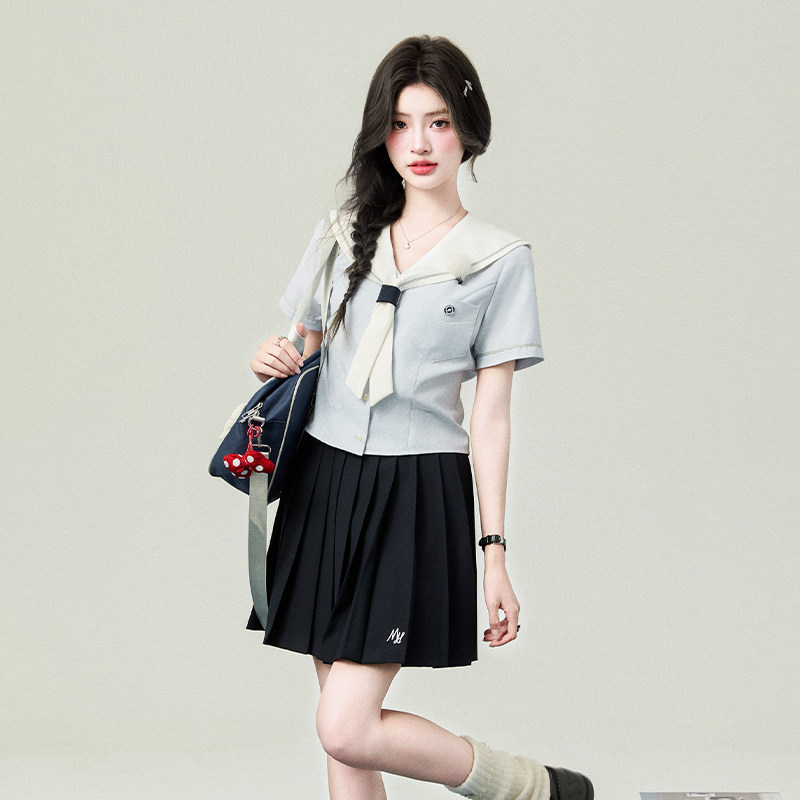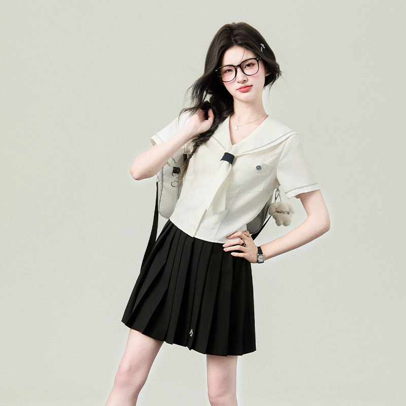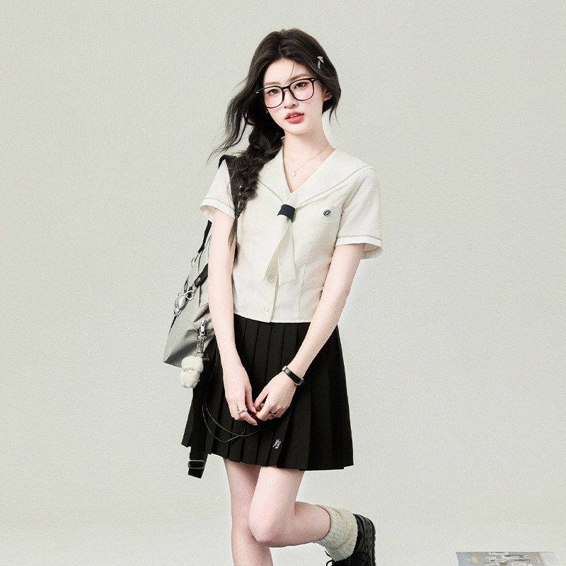 校供感上衣学院 女夏毕业季 花铃太太jk制服名古女高水手领短袖 衬衫
