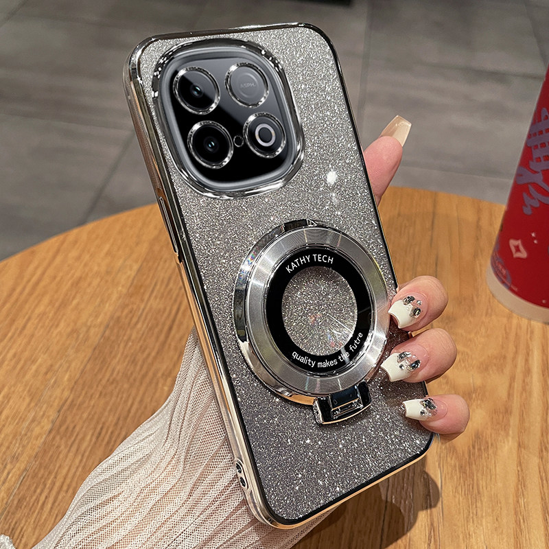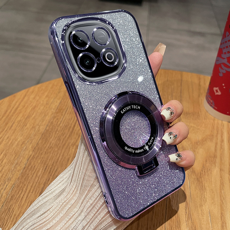 适用vivoy300GT手机壳闪粉带支架gt电镀硅胶保护套轻薄时尚 潮V2452GA高档镜头全包防摔软壳 网红名媛男女新款