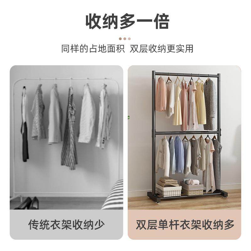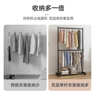 钢管晾衣架落地简易家用阳台卧室挂衣架不锈钢室内上下双层挂衣杆