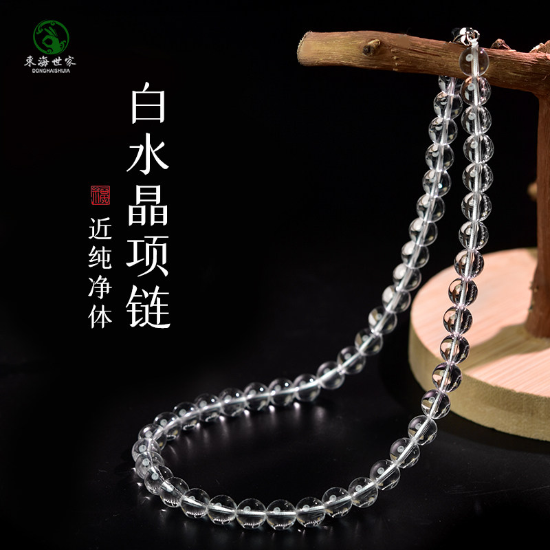 白水晶项链女东海水晶玛瑙玉髓翡翠宝玉石散珠子锁骨链新款 颈链