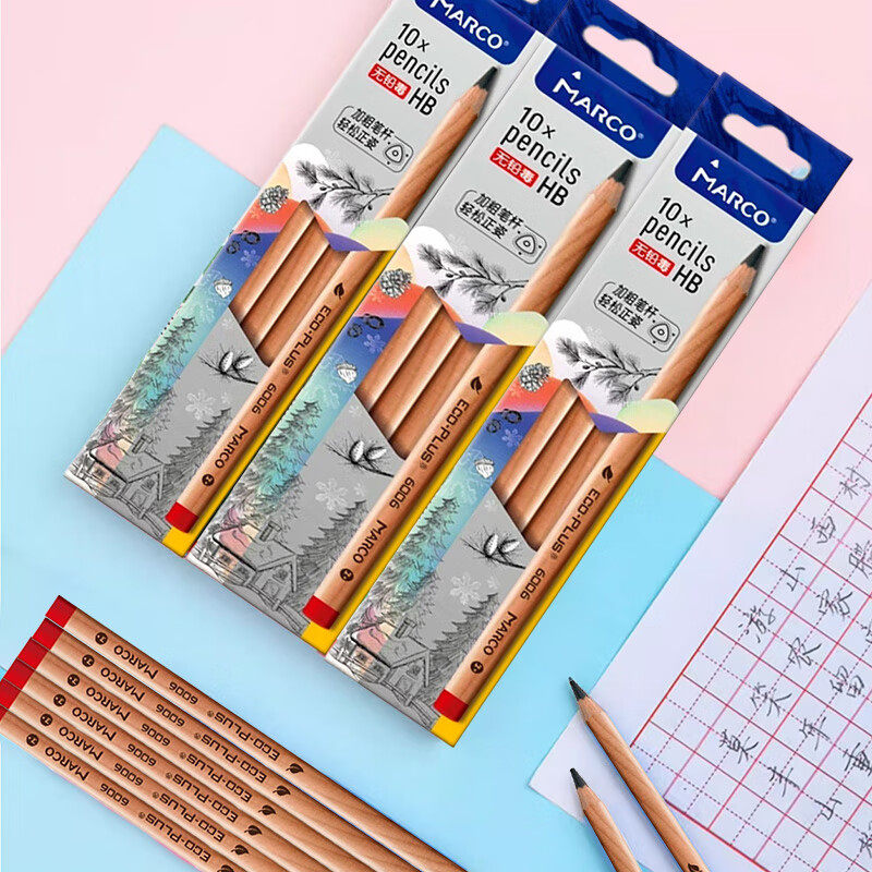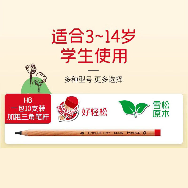 马可原木粗三角杆铅笔 幼儿园宝宝小学生z 610学龄前儿童铅芯3岁