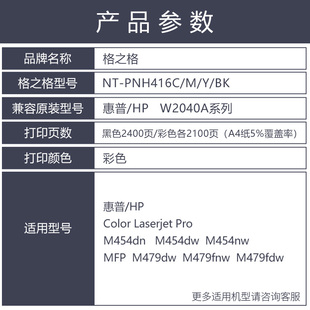 M479fnw粉盒M454dw MFP M454dn M455dn M480f打印机HP416A墨盒W2040A 格之格适用惠普M479fdw硒鼓M479dw
