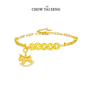 周大生金色小马项链S925纯银国风新中式 精致生肖马吊坠女生日礼物