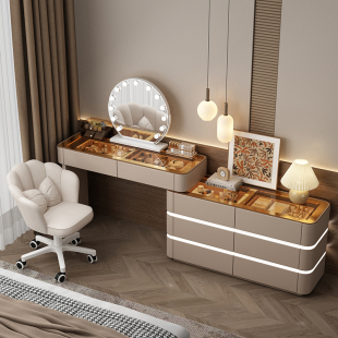 2026新款 镜面梳妆台现代卧室简约高级感斗柜一体化妆桌实木床尾