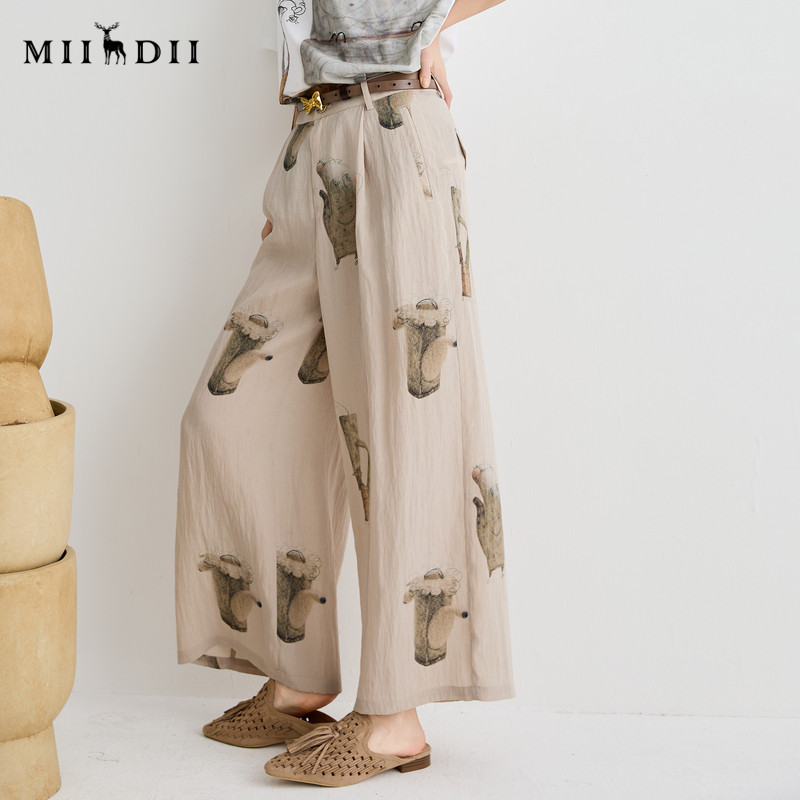 复古风通勤艺术宽松阔腿长裤 新品 252MK0683 女2025夏季 谜底休闲裤