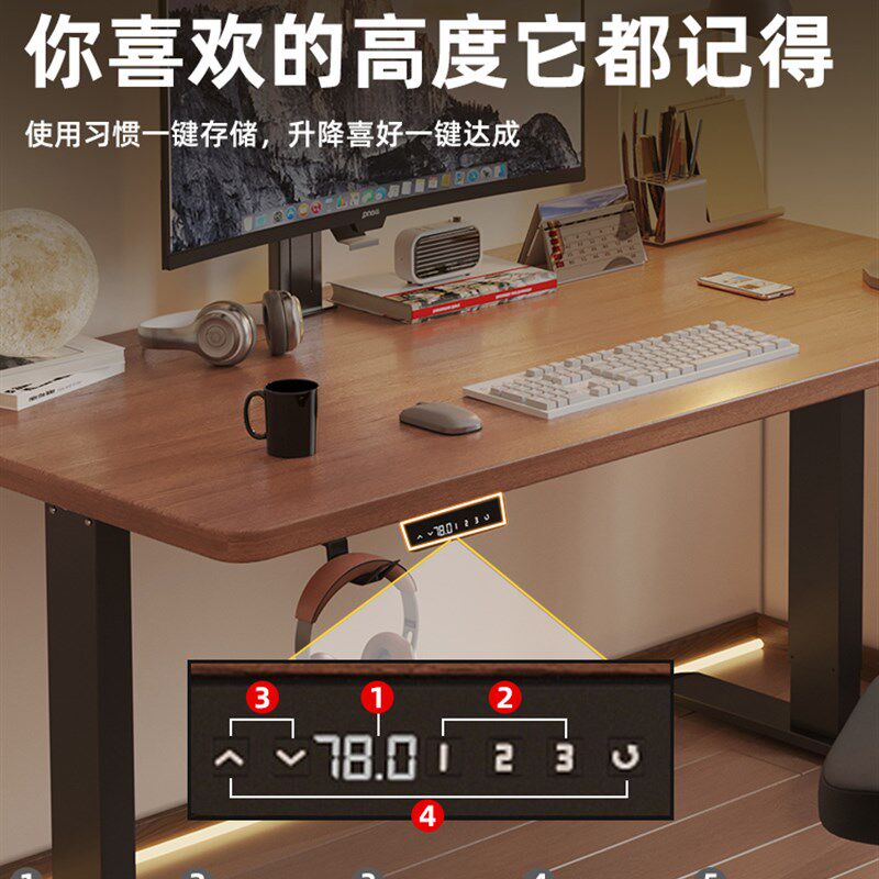 实木电动升降桌电脑桌学习桌书桌家用办公桌电竞桌子可升降工作台