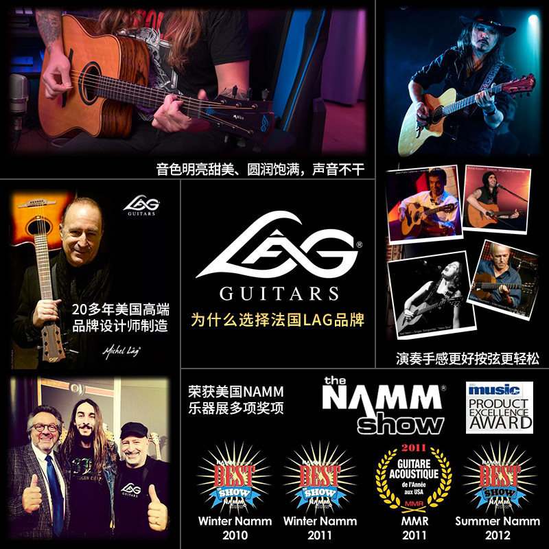 法国LAG单板电箱民谣吉他WHITETHVPLEXI限量款 智能吉他面单弹唱