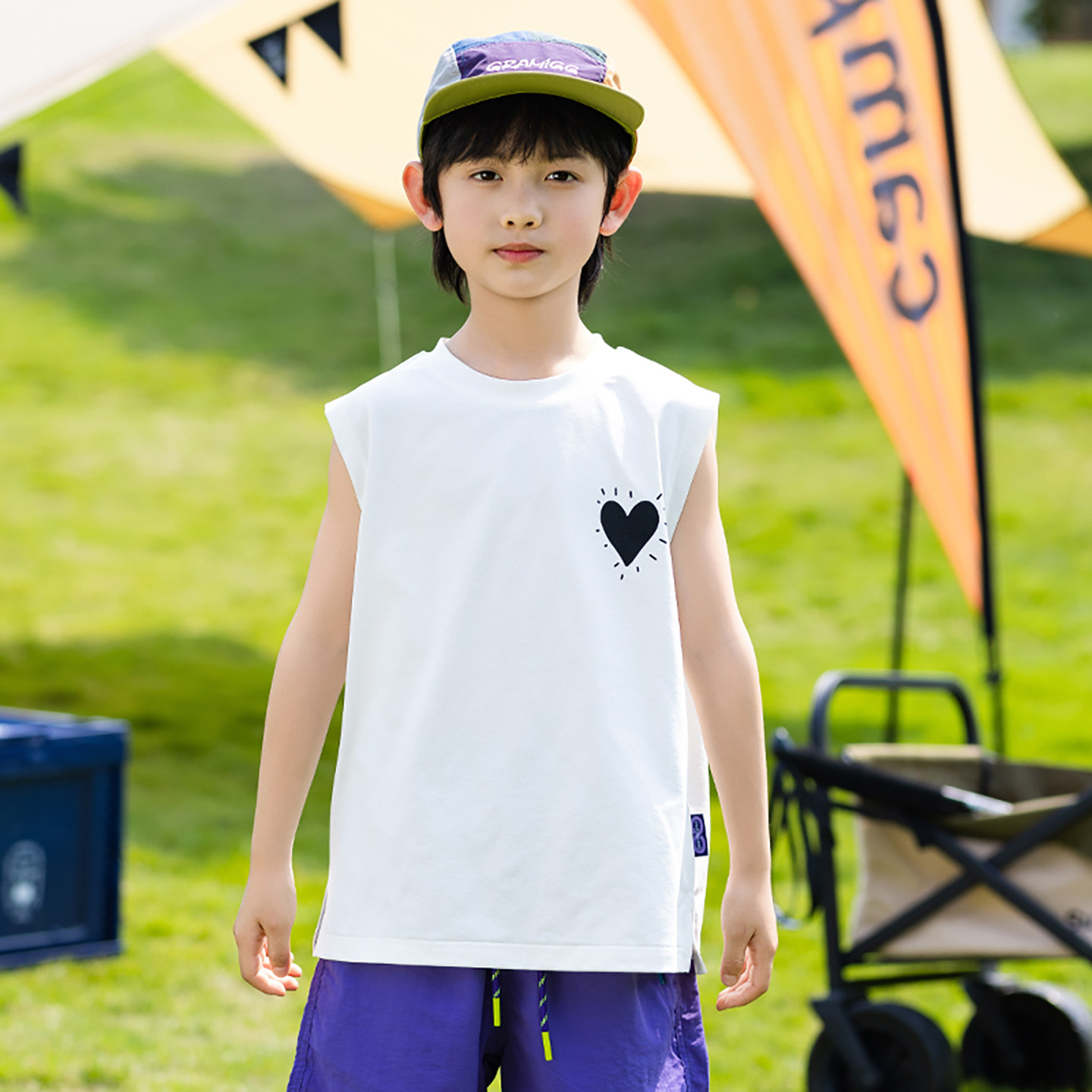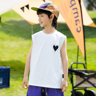 卡通印花无袖 儿童装 坎肩背心中大童运动速干上衣 2025新款 男童夏装