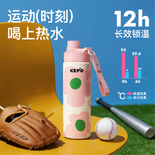 KEPO保温杯运动水杯女生高颜值新款 保冷吸管杯上学水壶便携杯子
