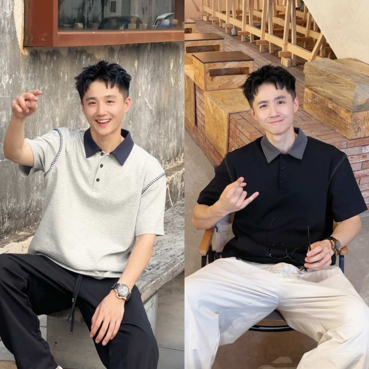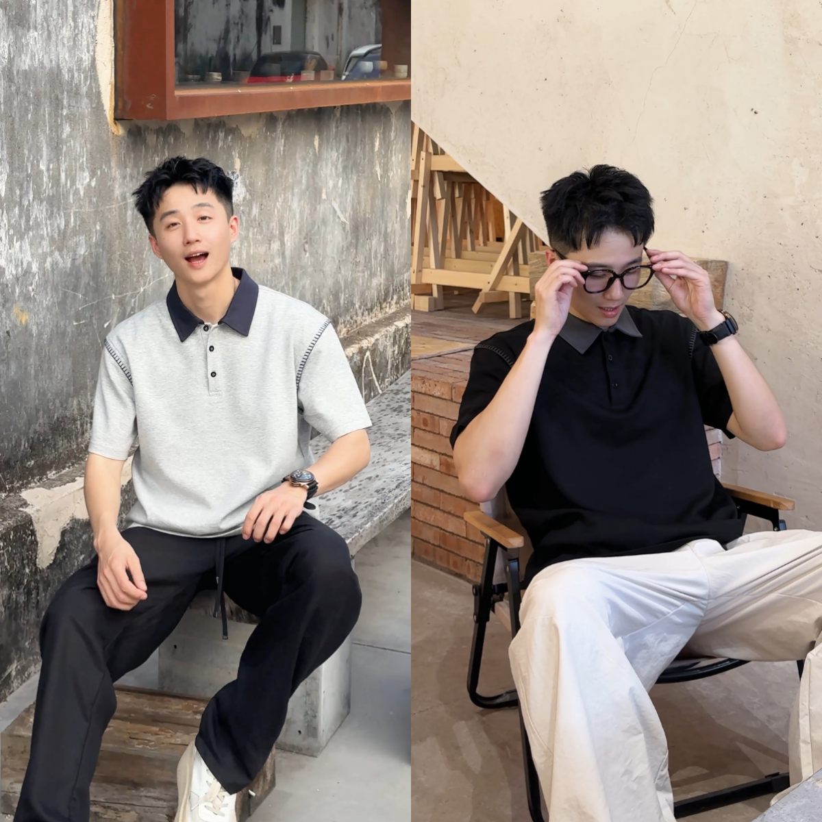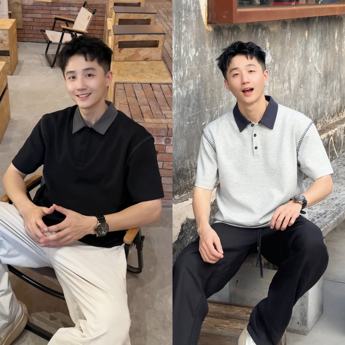 短袖 撞色POLO衫 男哈梭线拼接简约百搭翻领百搭透气上衣潮 新款 夏季