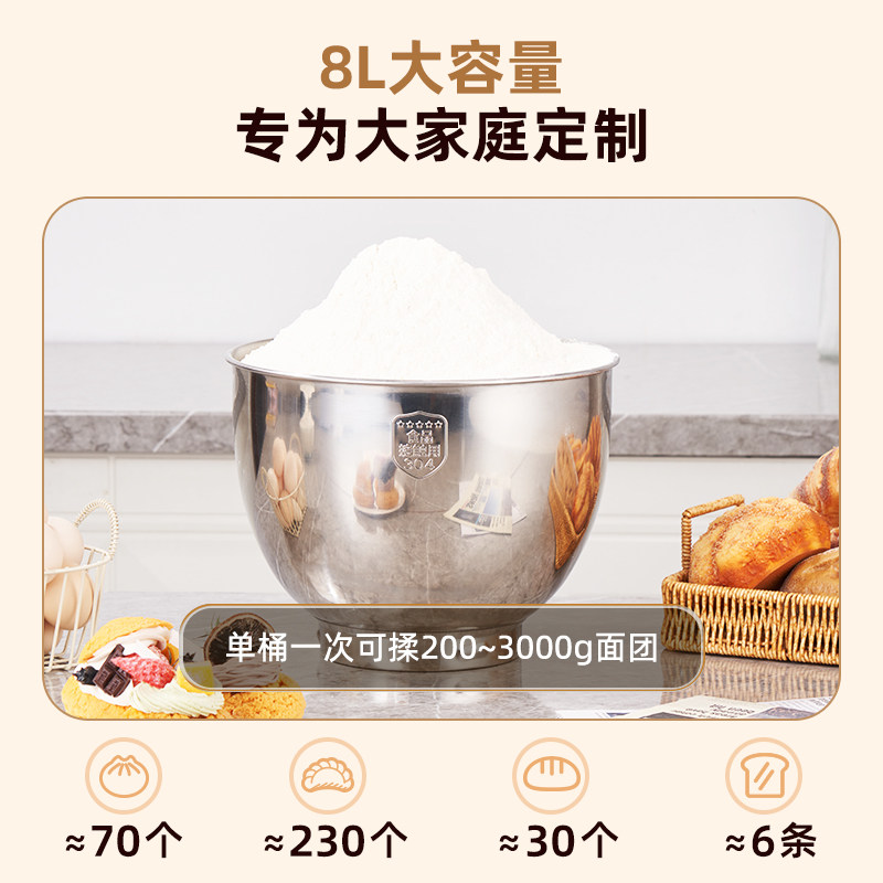 顺然多功能厨师机揉面发酵一体和面机8L全自动打蛋器 国补15%