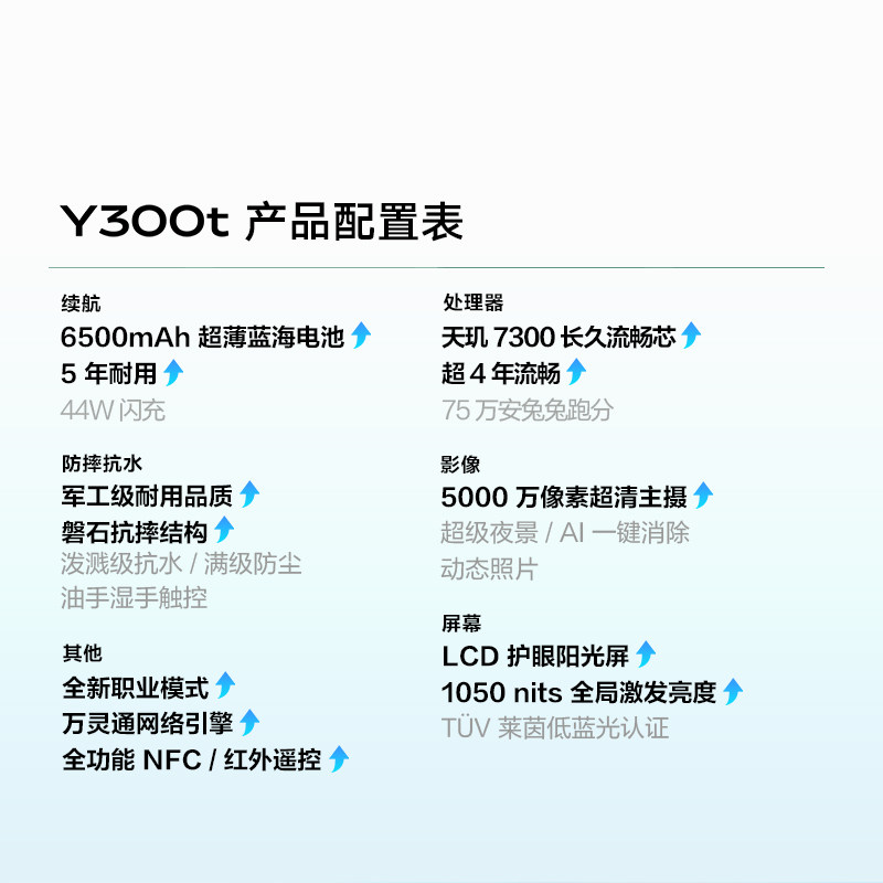 vivo Y300t手机5G轻薄6500毫安时44W闪充大内存天玑7300耐用手机官网正品