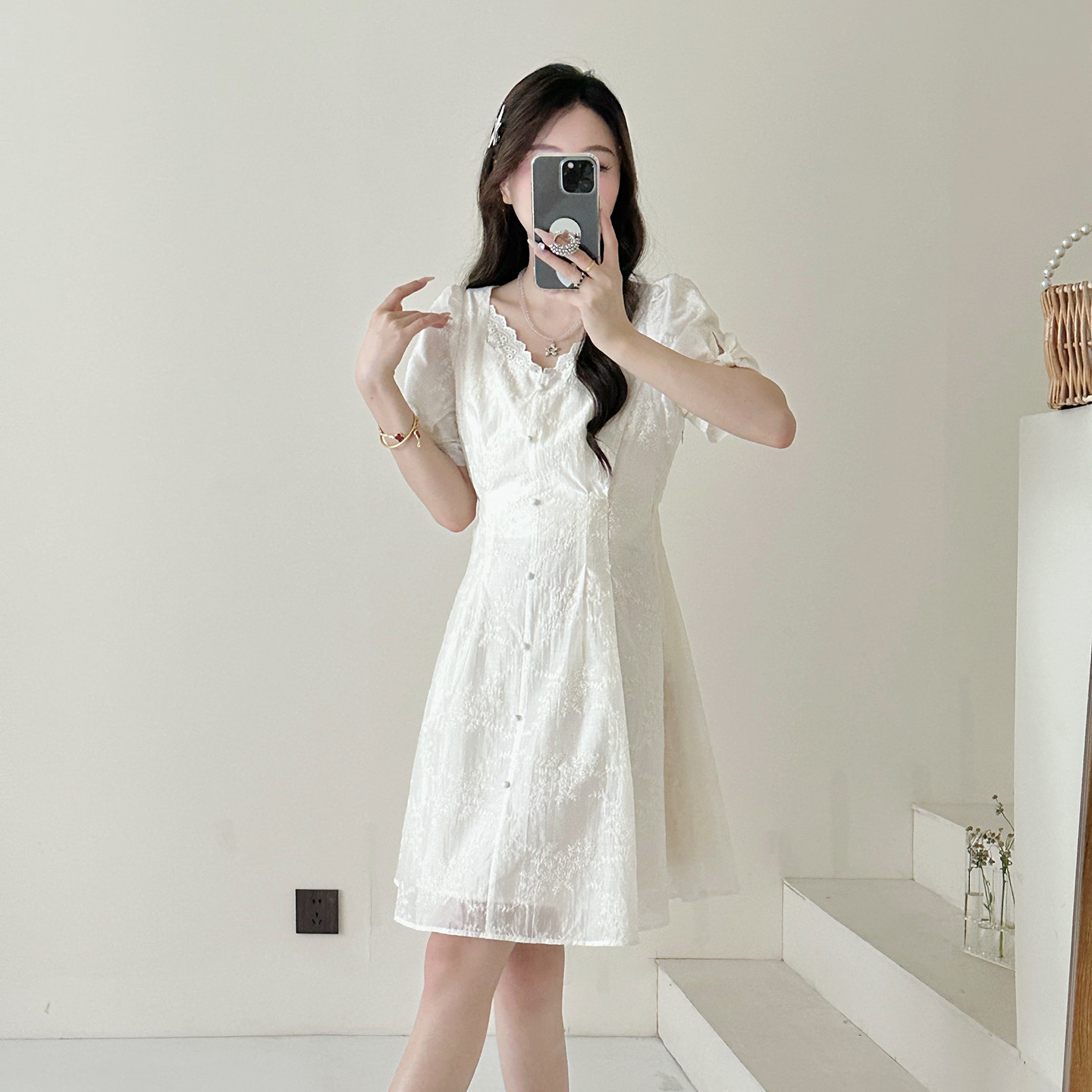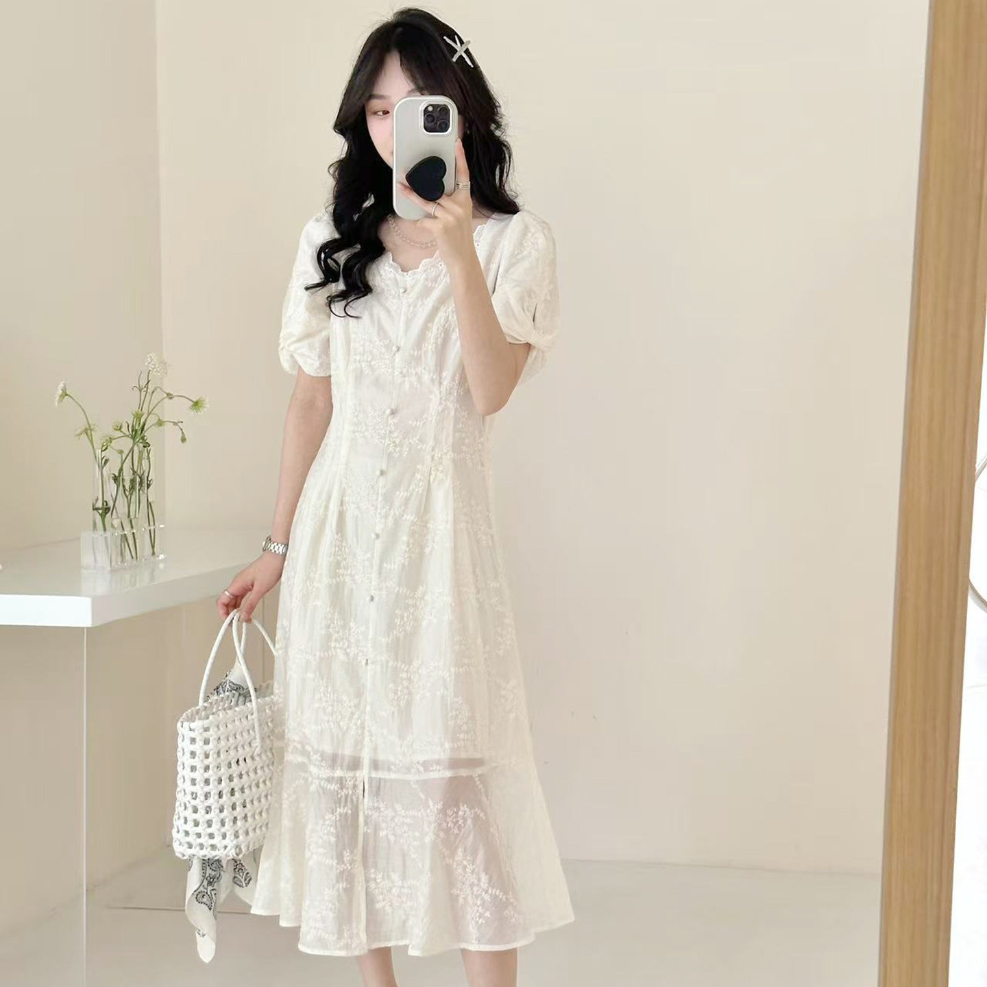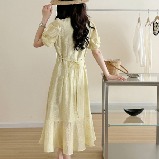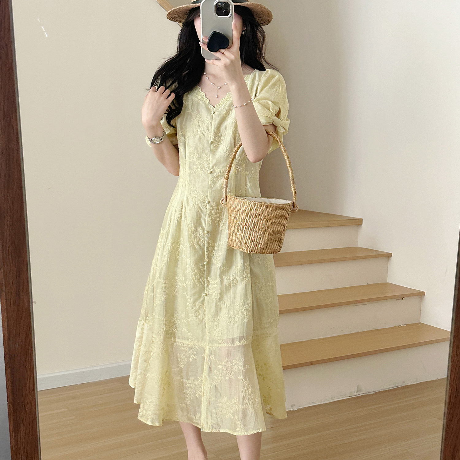 气质刺绣v领收腰连衣裙女收腰显瘦 26春夏法式 糖安妮 南法旧梦