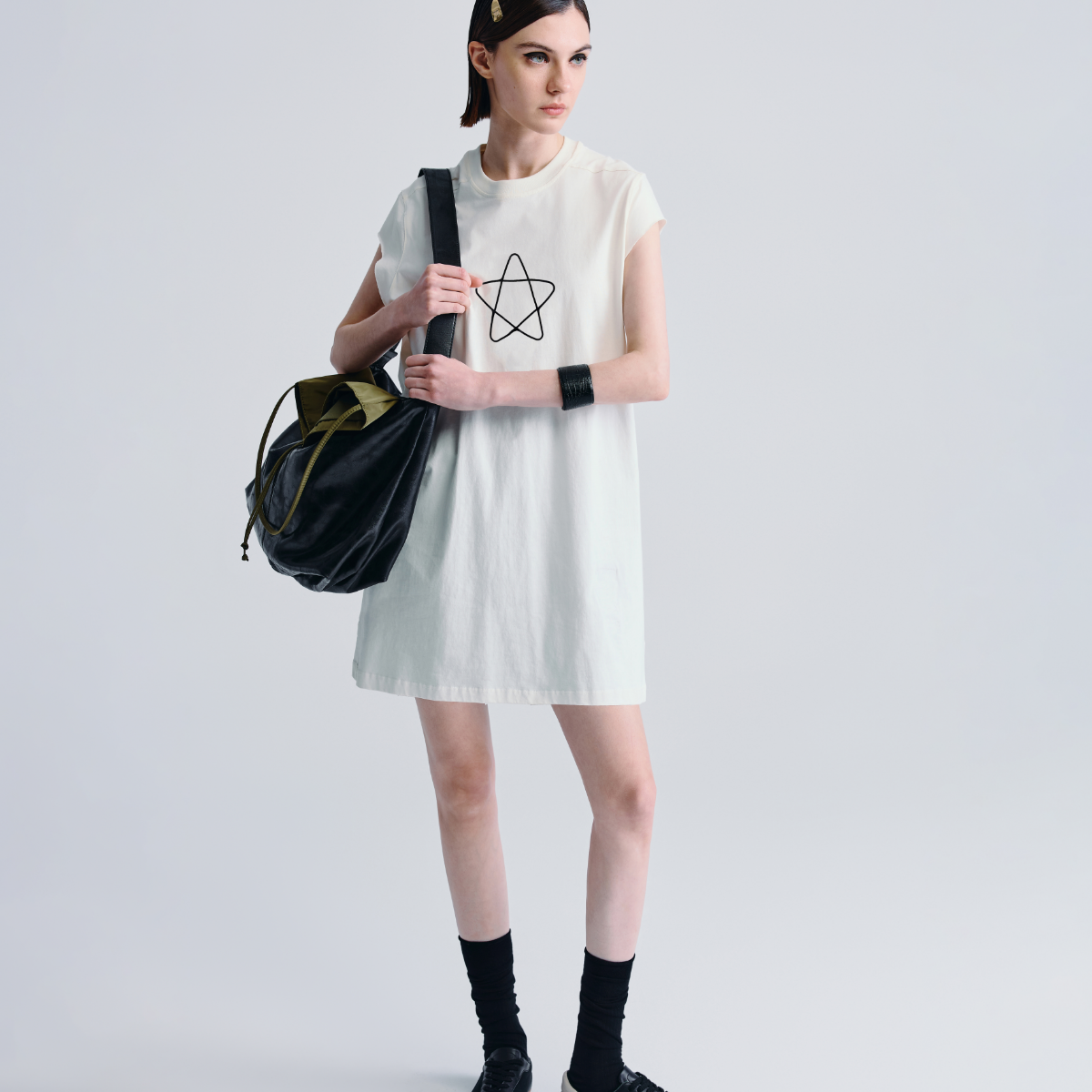 拼接荷叶边长裙 复古白色圆领针织连衣裙女春秋2025新款 松弛感