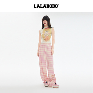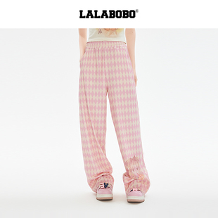 女原创潮牌格子直筒裤 LALABOBO25年冰感长裤 子 凉感面料 路晨同款