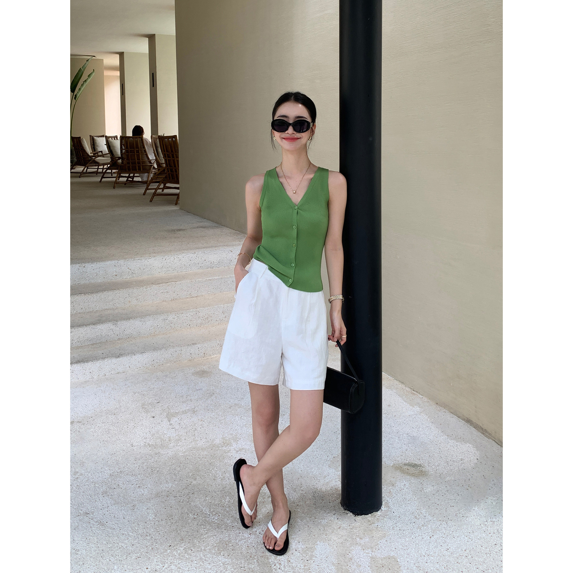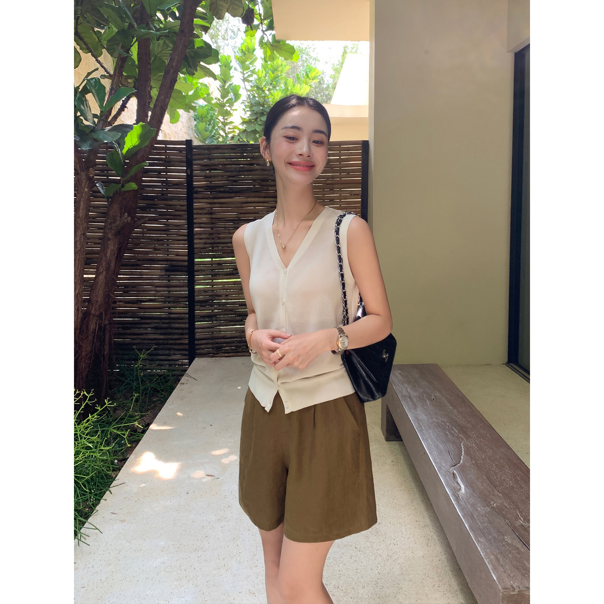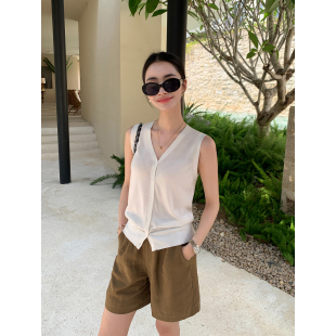 Lin 五分裤 老钱风汉麻系列 休闲阔腿热裤 女夏 简约直筒短裤 Maven