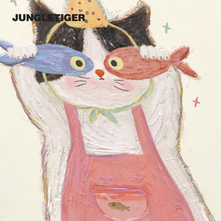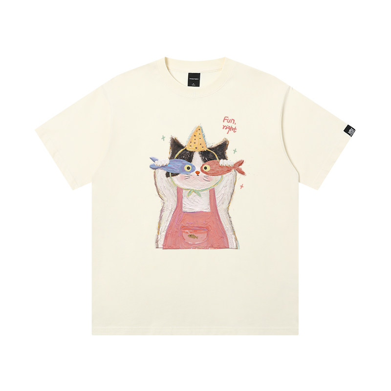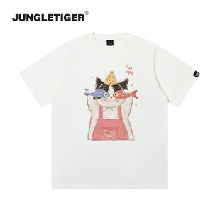 丛林老虎&插画师联名零食小猫咪短袖 T恤男女天马行空宽松纯棉半袖