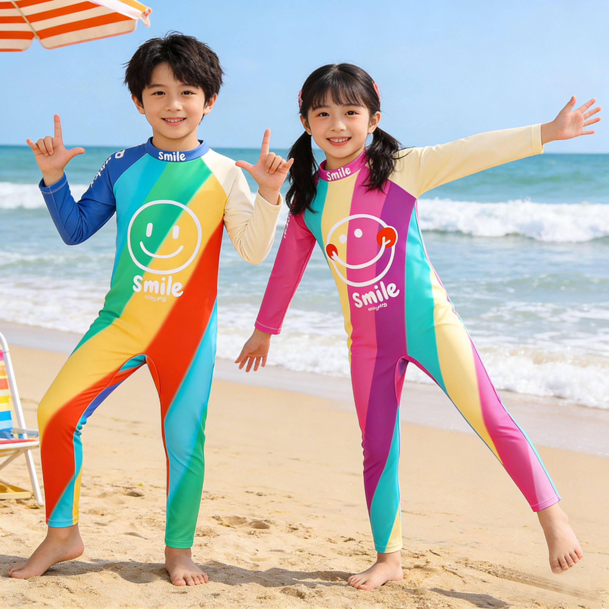 防晒游泳衣男宝宝女孩速干温泉泳装 2025新款 儿童泳衣男童连体长袖