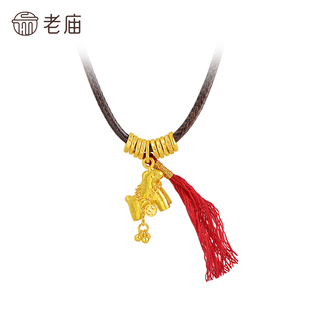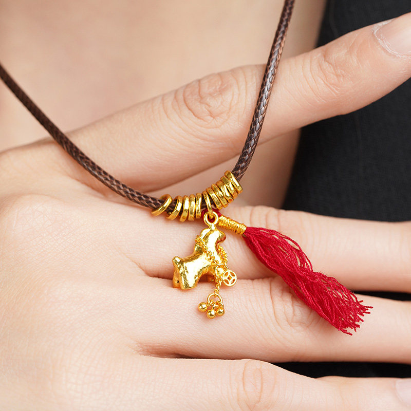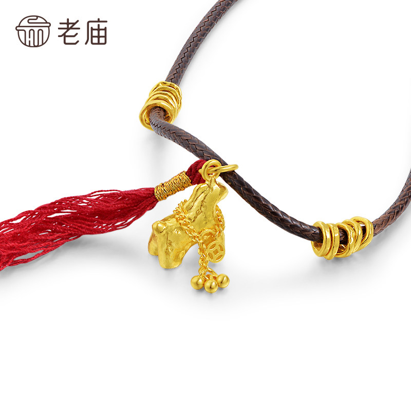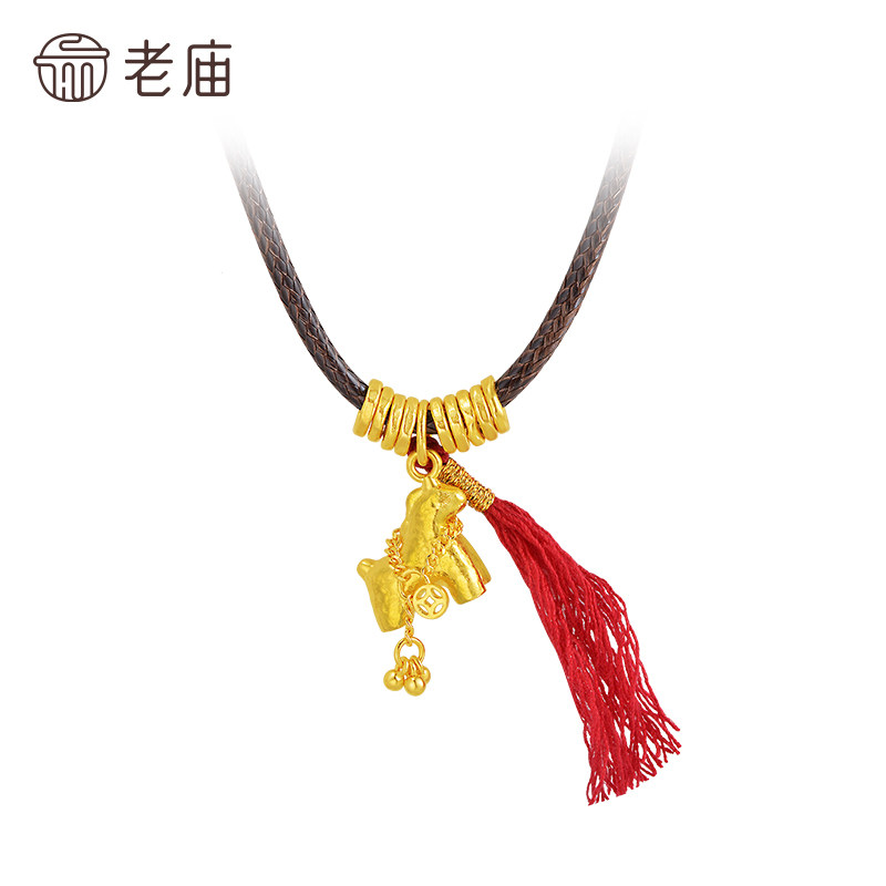 老庙黄金足金锤纹马挂坠马住财运流苏铜钱点缀古法寓意马上有钱