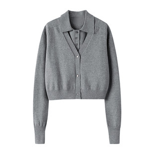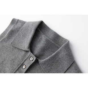 圆领100%纯山羊绒衫 灰色宽松打底上衣 女毛衣秋冬假两件拼色针织衫