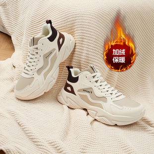 厚底增高情侣休闲鞋 革面加绒棉鞋 运动鞋 子平底鞋 女鞋 特步秋冬男鞋