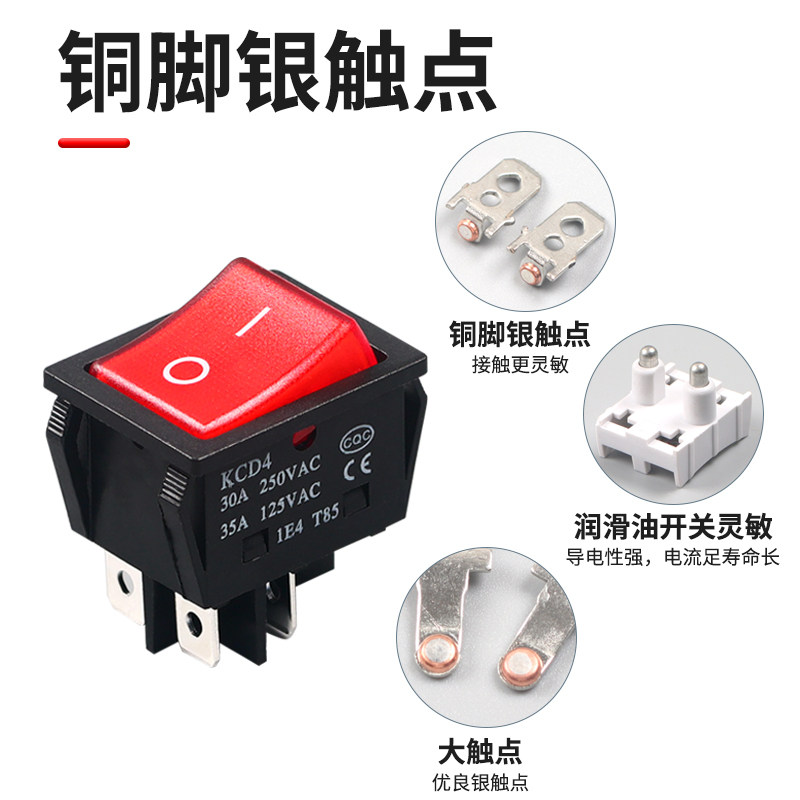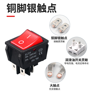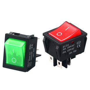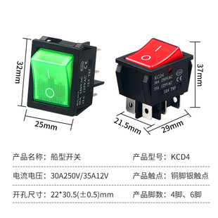 电焊机大电流船型开关35A大功率翘板电源KCD4带灯船形四脚 红绿色