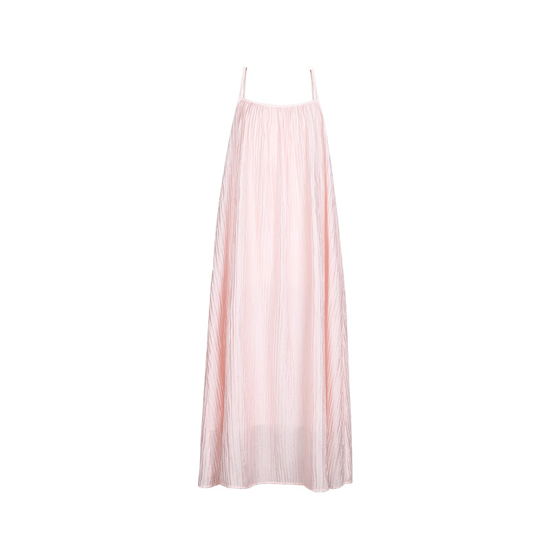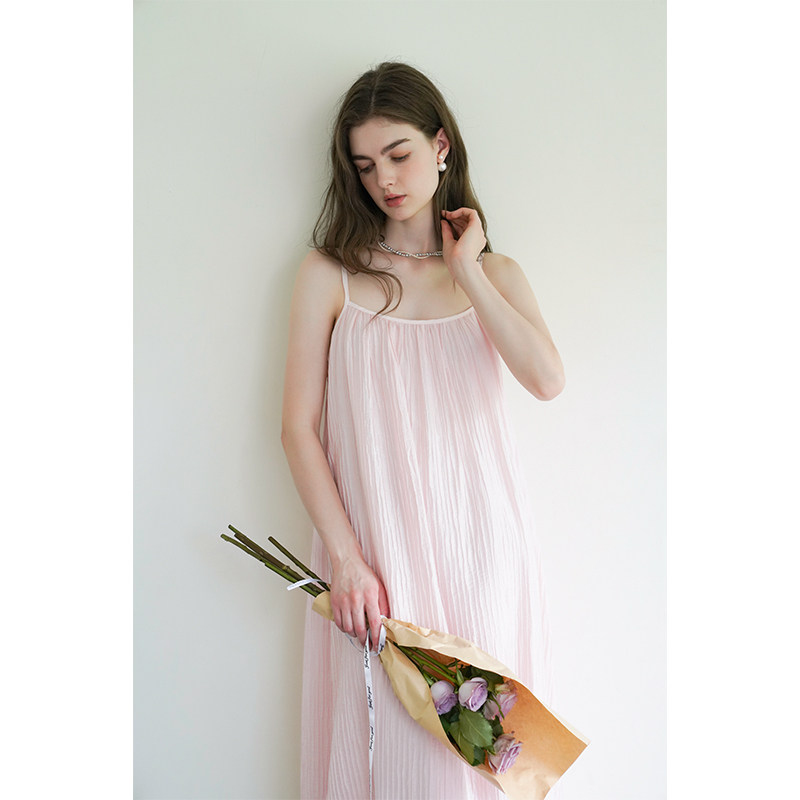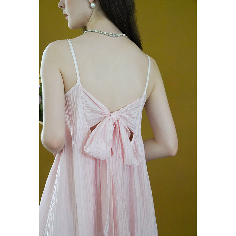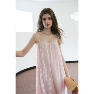 miora 粉色百褶后背绑带连衣裙小众度假慵懒风吊带长裙 studio法式
