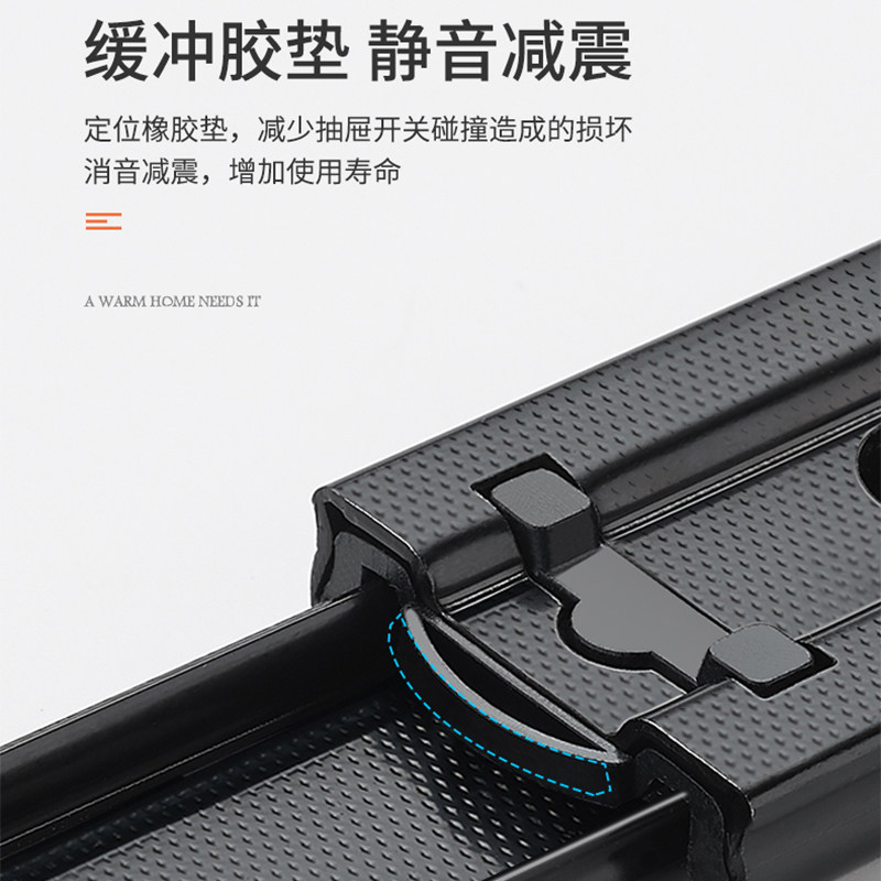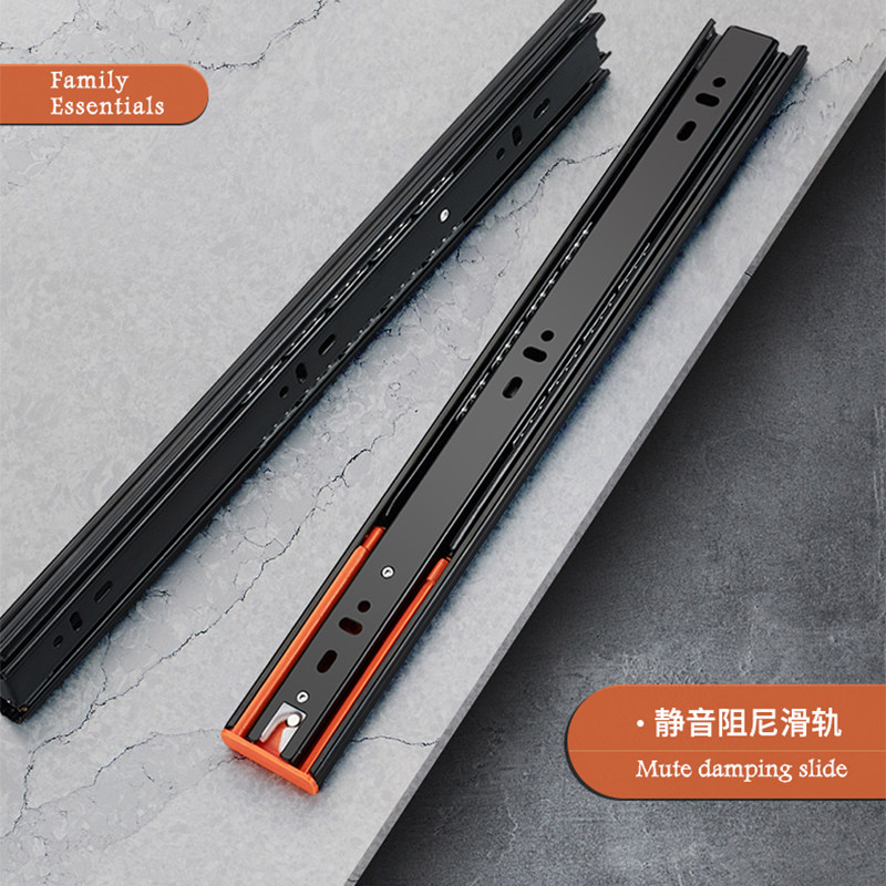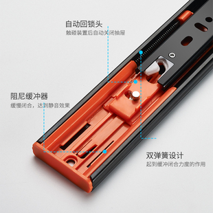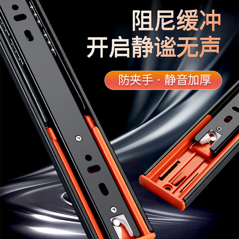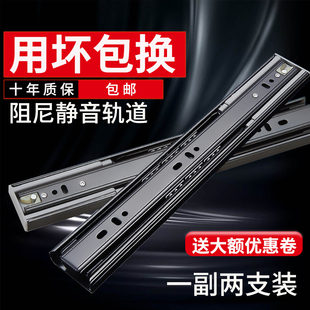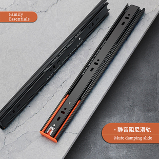 不锈钢抽屉轨道三节轨加厚缓冲阻尼静音导轨五金配件抽屉滑轨滑道