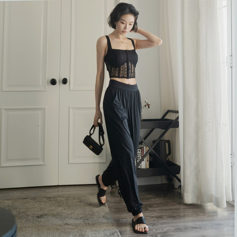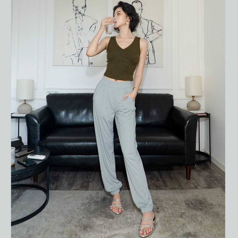 运动裤 月影集 宽松束脚窄版 垂感高腰弹力松紧哈伦休闲裤 冰皮夏裤
