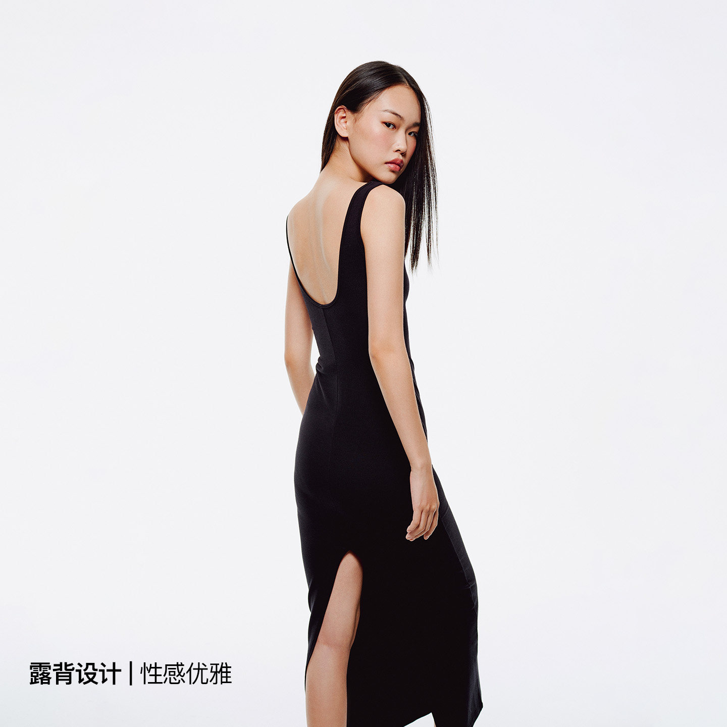 asomesome美式 包臀背心吊带裙开叉长裙 黑色露背紧身连衣裙女修身