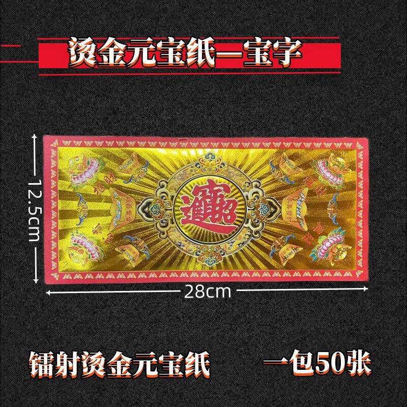 大号双面彩印正面镭射烫金长条元 宝花篮底座一包50张 宝纸折莲花元