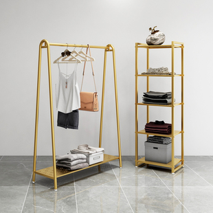 店中岛货架网红挂衣架子 女装 服装 店展示架金色衣服陈列衣架落地式