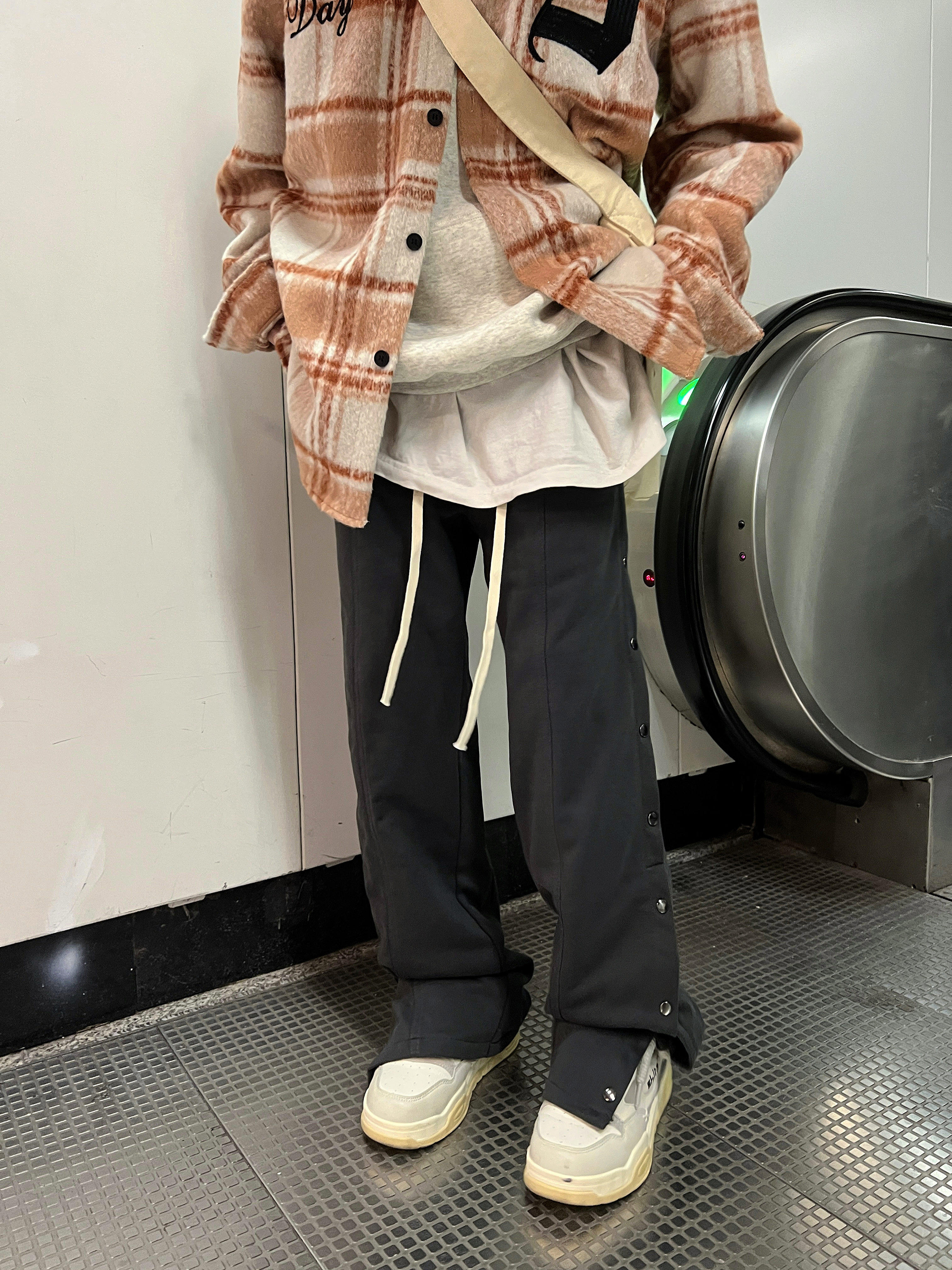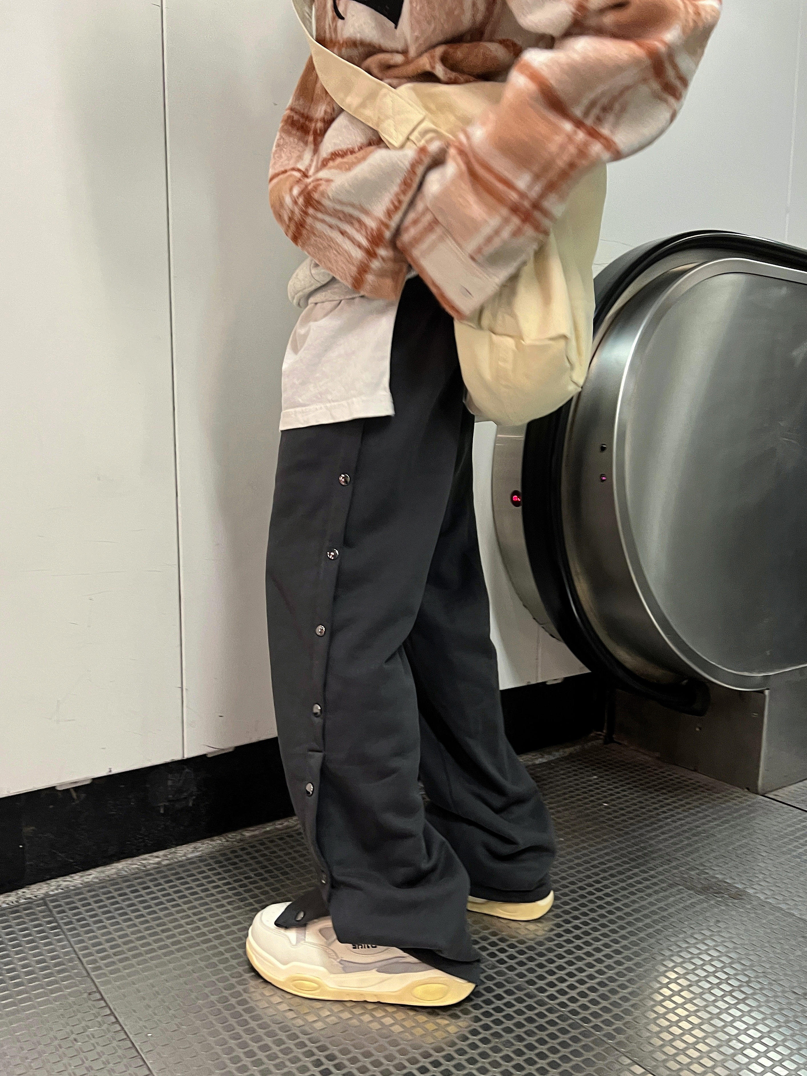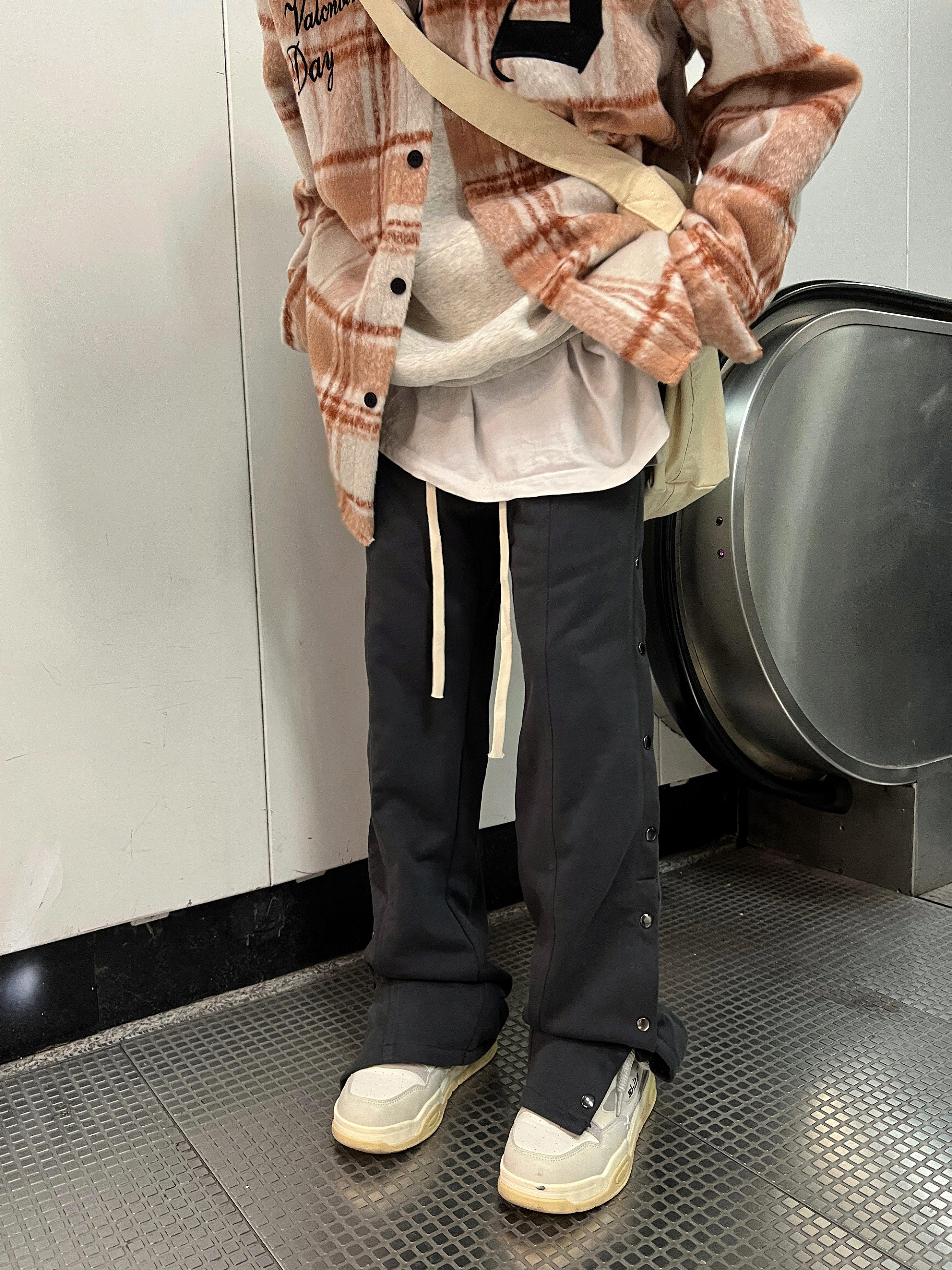 直筒休闲拖地运动裤 黑色侧边排扣长裤 ins 2022AW国潮原创美式 F383