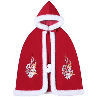 国风印花斗篷披风女加绒加厚毛领披肩 Chapelle新中式 拉夏贝尔