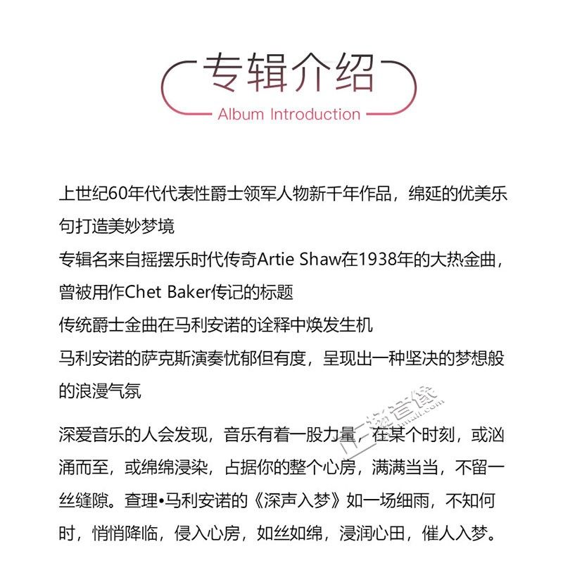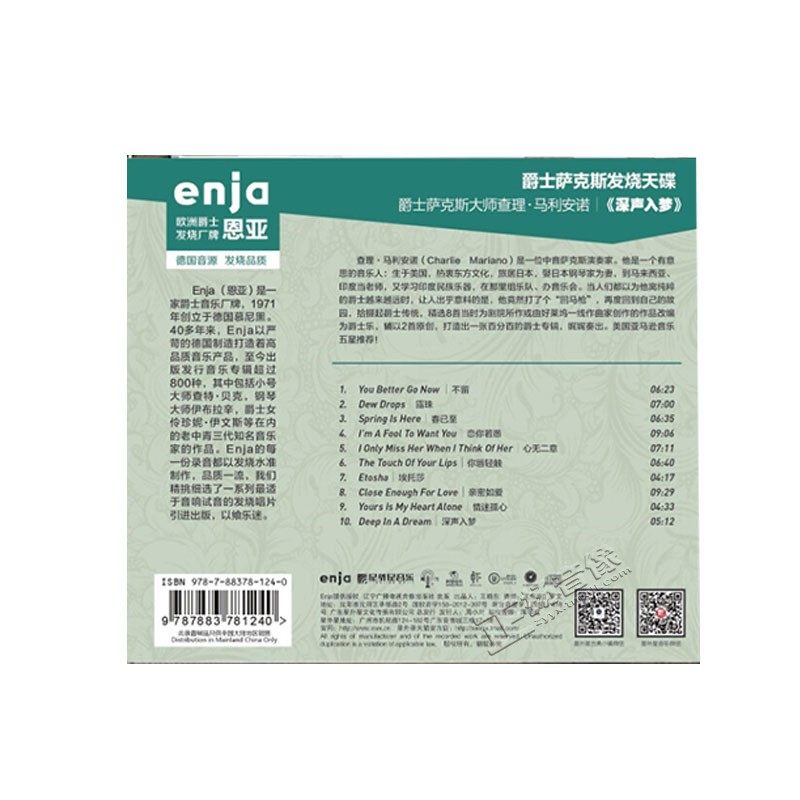 深声入梦 马利安诺 cd碟片 爵士萨克斯大师查理 恩亚系列