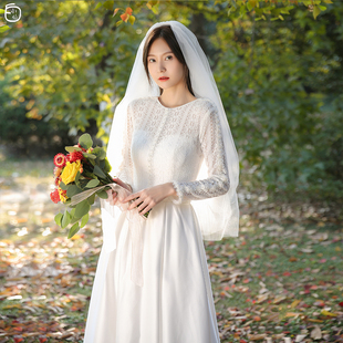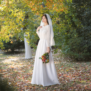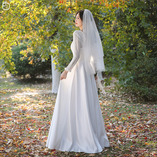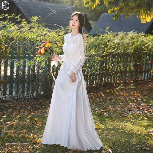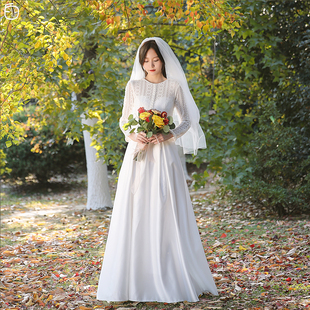 MISSQIAN法式 蕾丝缎面鱼尾订婚出阁礼服高端新娘晨袍女 轻婚纱长袖
