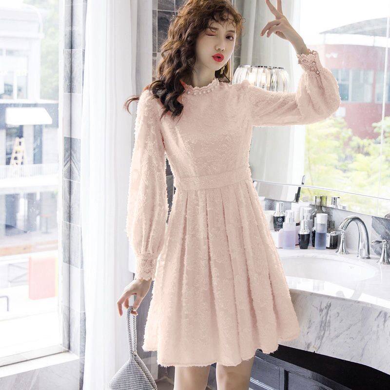 新中式 连衣裙女秋收腰显瘦高级感A字花苞蓬蓬长裙女 立领盘扣长袖