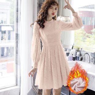 菲梦伊红色小香风连衣裙女秋装 裙子 名媛轻奢高贵千金感气质中长款