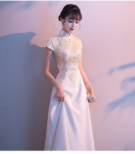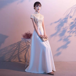 旗袍合唱团主持人时尚 长款 气质 夏宴会演出中式 晚礼服裙女2025新款