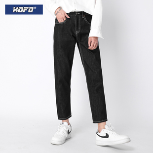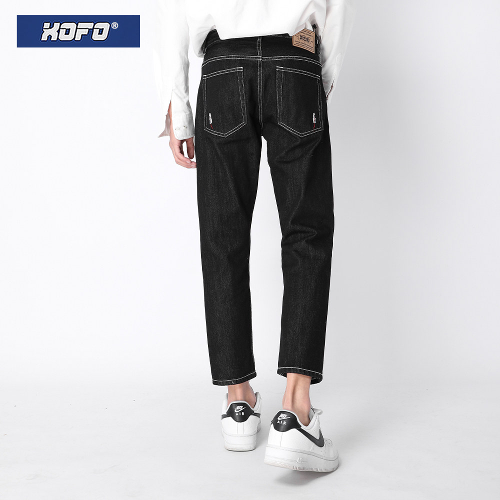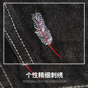 冬休闲直筒九分裤 2025新款 男款 小脚牛仔裤 黑色白线刺绣锥形修身