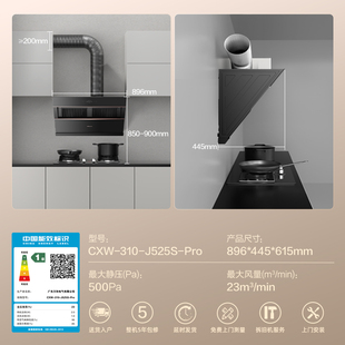 美 蒸汽洗油烟机燃气灶套餐烟灶消热顶侧双吸一体厨房三件套装