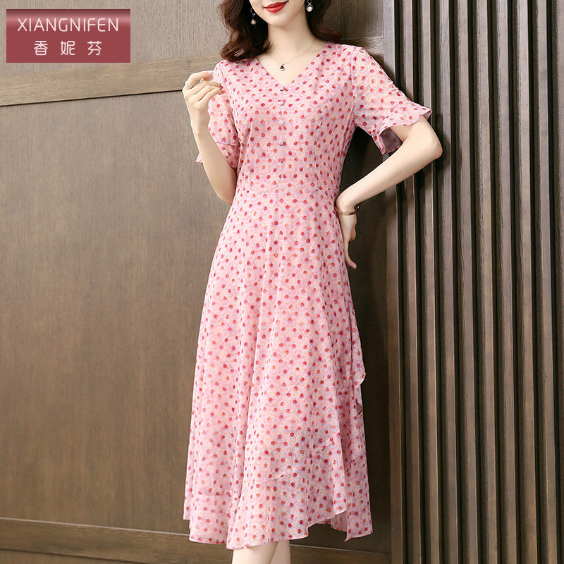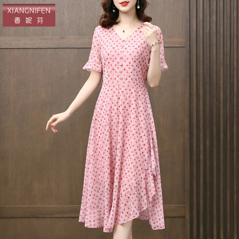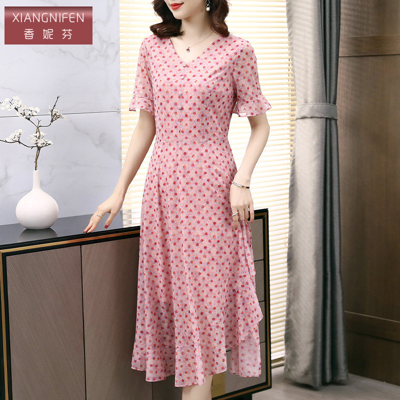 香妮芬台湾纱洋气减龄高端奢华精致妈妈休闲连衣裙女夏季 202新款