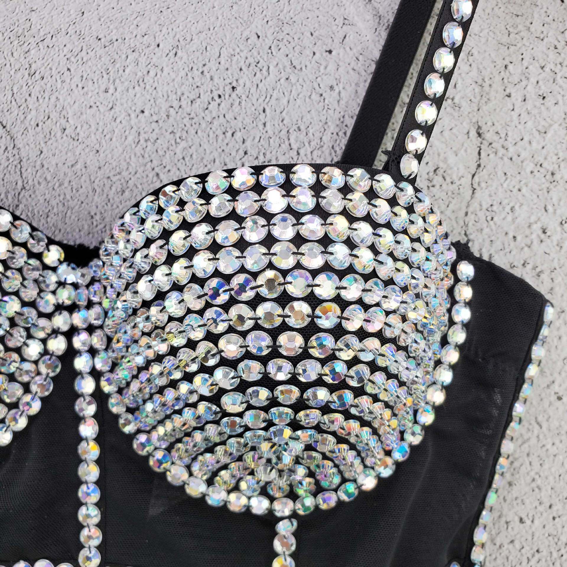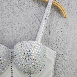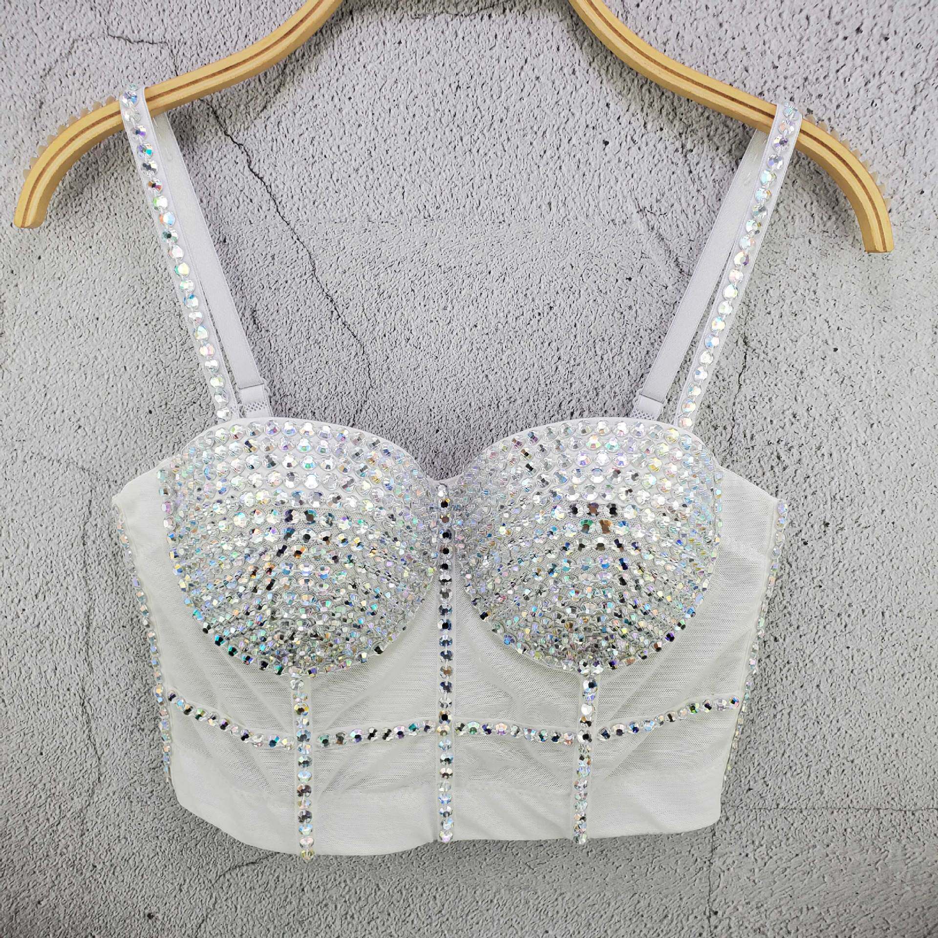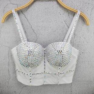 显瘦辣妹上衣女 个性 新款 彩色亚克力钻重工网纱小吊带背心欧美热卖