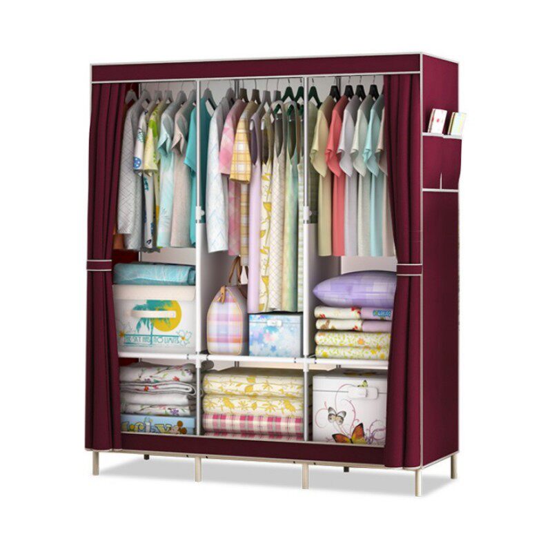 免安装 布衣柜家用卧室全钢架加粗加厚出租房耐用 折叠简易衣柜组装