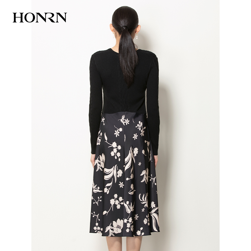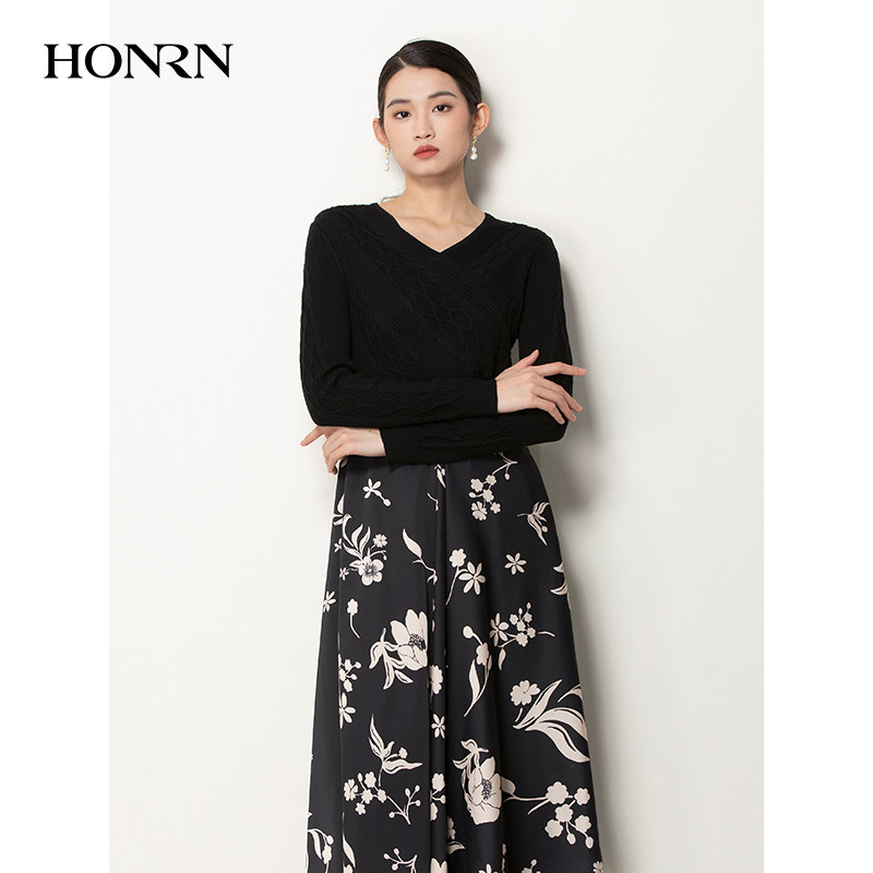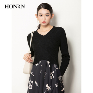 显瘦毛衫 HONRN 针织拼接修身 v领长袖 连衣裙女HH11OL631 红人春秋季