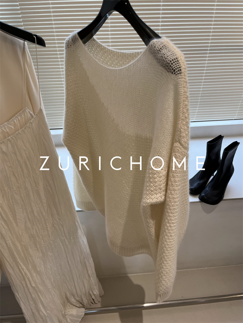 4muggle 黑色棒针针织斗篷不规则纯欲毛衣露肩上衣女 刚柔物语