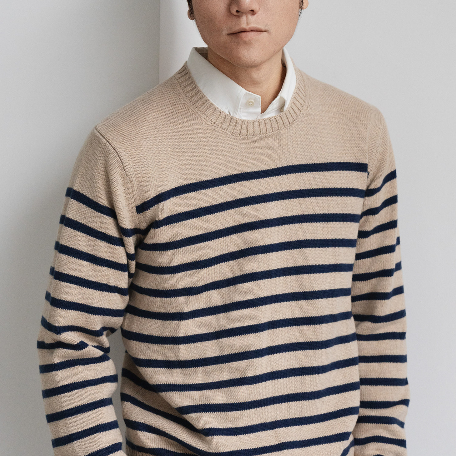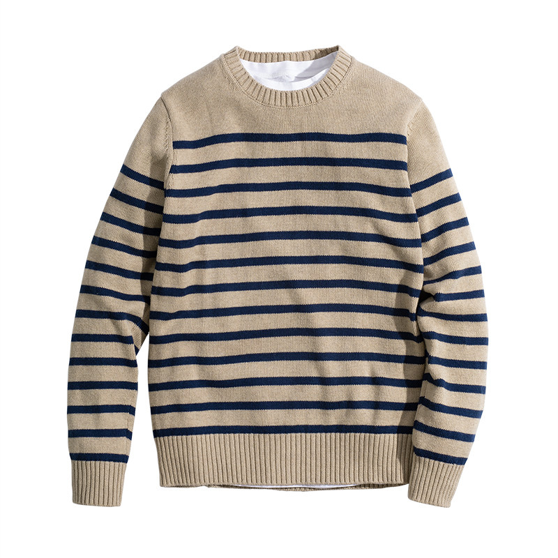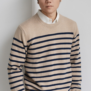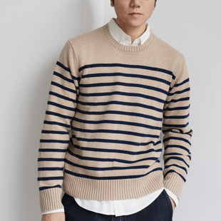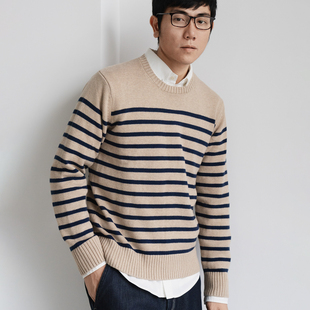 美利奴羊静奢毛衣 春秋冬复古卡其蓝条纹新疆棉 Arba设计 K03