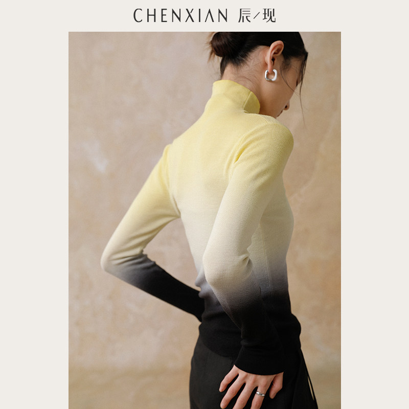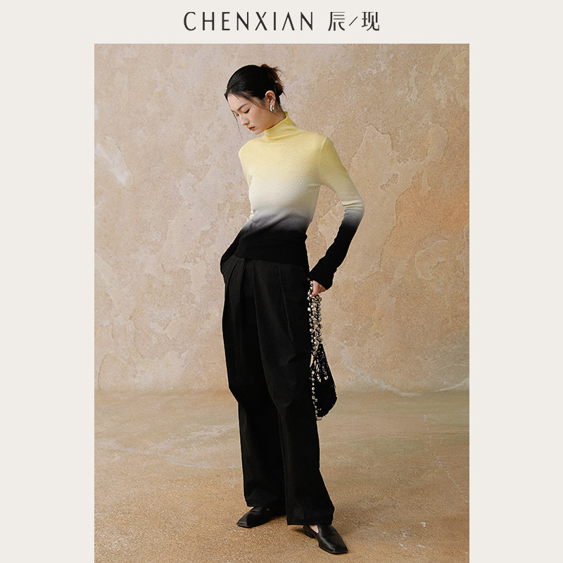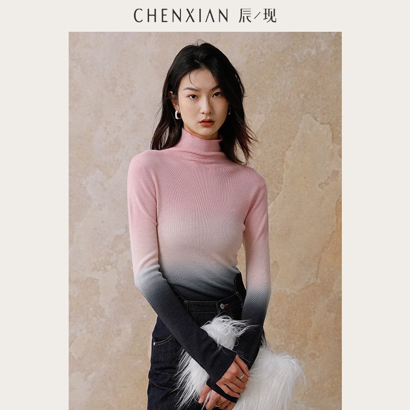 套头毛衣女 国风吊染渐变堆堆高领纯羊毛针织打底衫 到手299元